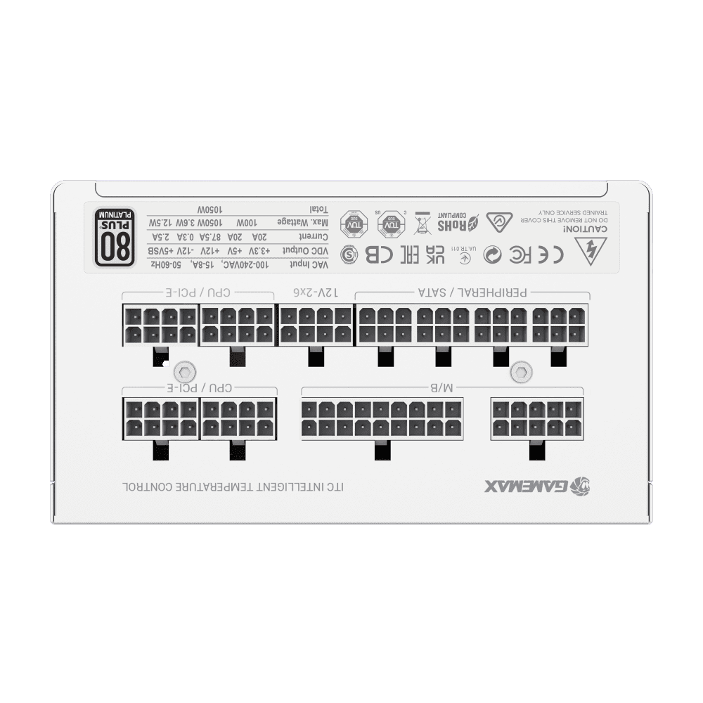Fuente de alimentación ATX3.1 PCIe5.1 de 1050 W con certificación 80 Plus Platinum y conector PCIe5.1 de 12 V-2*6 para conexión directa a GPU RTX™ Serie 40, minimizando la pérdida de corriente.