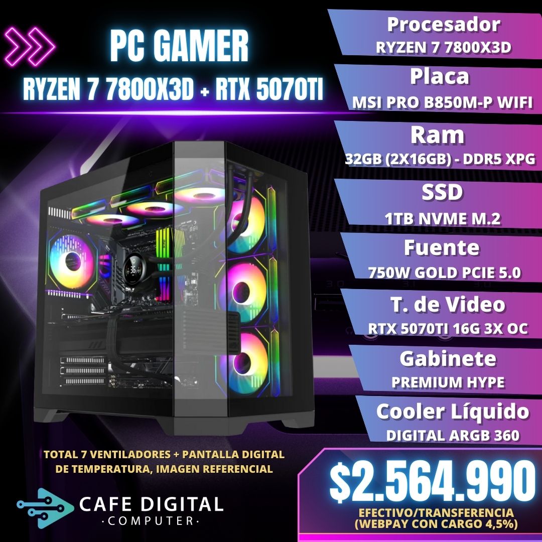 PC GAMER PRO – RYZEN 7 7800X3D / RTX 5070TI / 32GB DDR5 / 1TB – MASTER