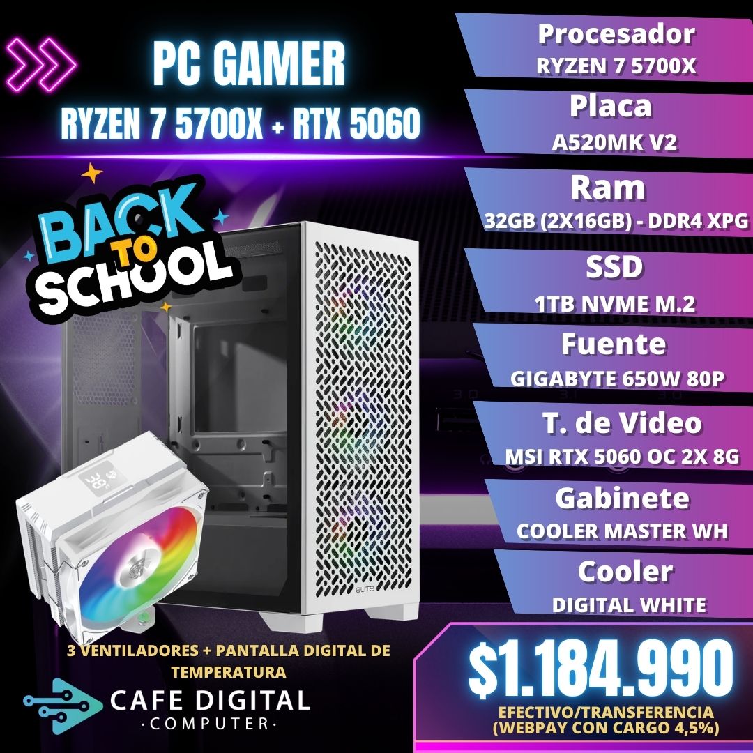 PC GAMER – RYZEN 7 5700X / RTX 5060 / 32GB / 1TB NVME – ELITE