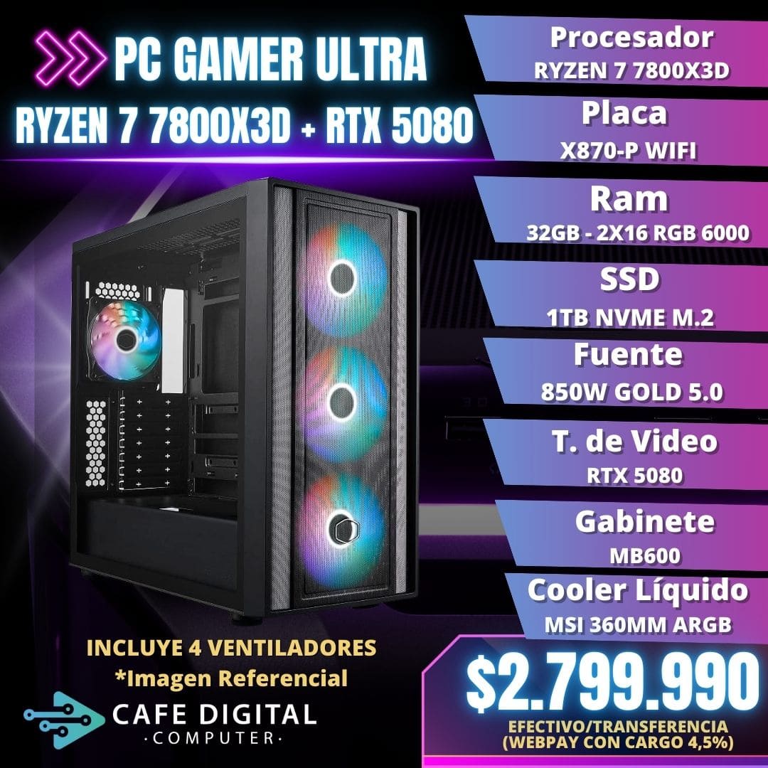 PC Gamer ULTRA – Ryzen 7 7800X3D / RTX 5080 / 32GB DDR5 / 1TB NVME – MASTERBOX